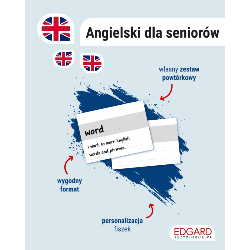 Uzupełnieniem zestawu są fiszki in blanco – puste kartoniki, na których możesz zapisywać nowe słowa i wyrażenia po angielsku. Dzięki nim łatwo stworzysz swój własny zestaw powtórkowy, dopasowany do indywidualnych potrzeb.