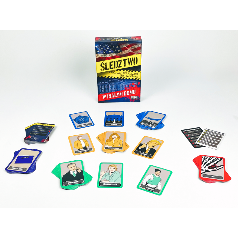 Śledztwo w Białym Domu to detektywistyczna gra karciana, w której wcielając się w postać świadka tworzysz kryminalną historię zbrodni lub rozwiązujesz polityczne i kryminalne intrygi jako członek zespołu śledczych!