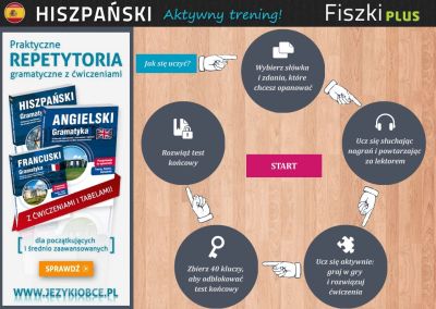 Z Fiszkami PLUS nie tylko zapamiętujesz słówka, lecz także poznajesz słownictwo w kontekście, uczysz się nieregularnych form oraz popularnych zwrotów językowych. Od dziś nauka języka stanie się przyjemnością!
