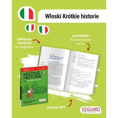 Pobierz bezpłatnie rozdział książki Włoski Krótkie historie. Dla początkujących oraz nagranie MP3 i ucz się inaczej niż do tej pory, bo na własnych zasadach. Otocz się żywym, praktycznym językiem i ciesz się efektami. To jak, włoski?